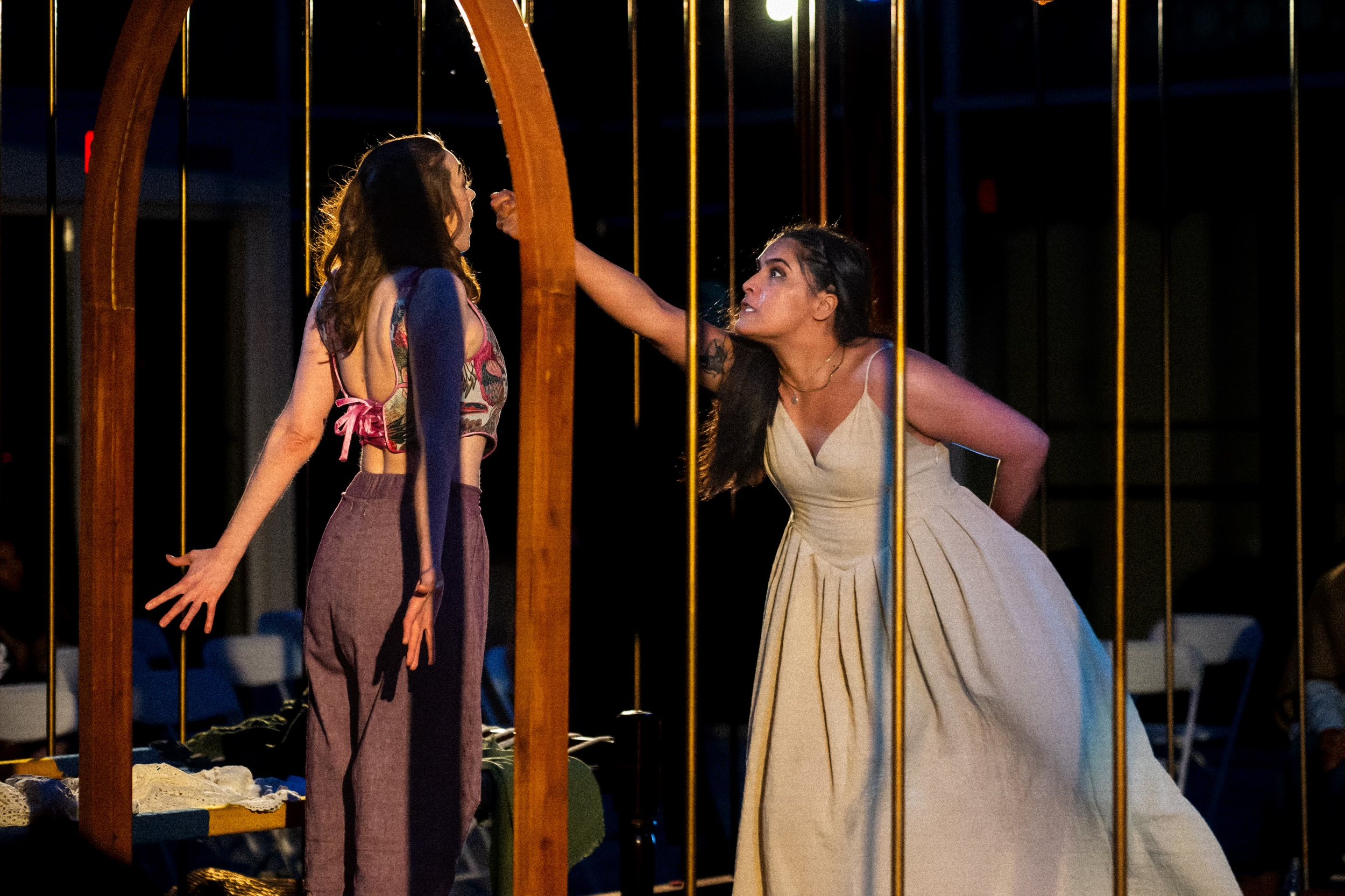 “The inmates perform the rock- and punk–inflected tunes live on instruments scattered throughout the cage. Cast members rotate through keyboards, piano, drums, guitar, bass, violin and flute, revealing their serious musical chops. The ensemble is strong throughout”